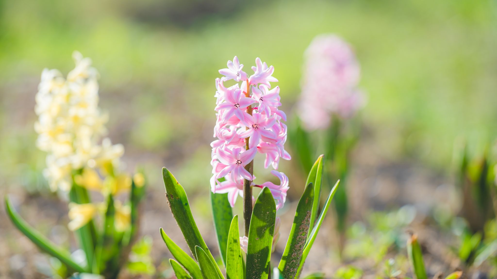 粉白的櫻花 火紅的郁金香 淡雅的繡球競相綻放