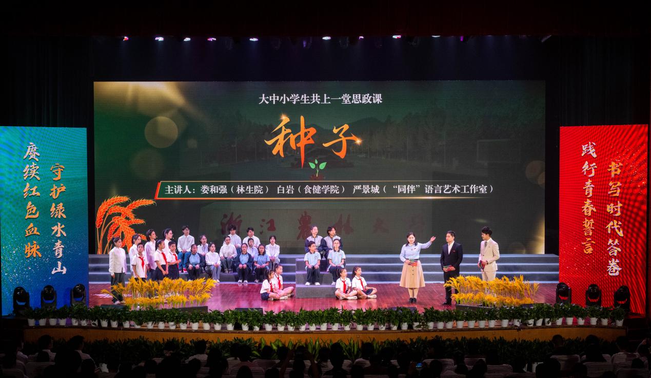 本次活動由宣傳部、學工部、研工部、團委主辦。臨安區(qū)教育局、農(nóng)林大附屬中學錦城二中、農(nóng)林大附小、中國人保財險杭州分公司、建設(shè)銀行杭州分行等單位代表,學校相關(guān)職能部門負責人、二級學院黨組織負責人和青年師生代表近1000人參加活動。