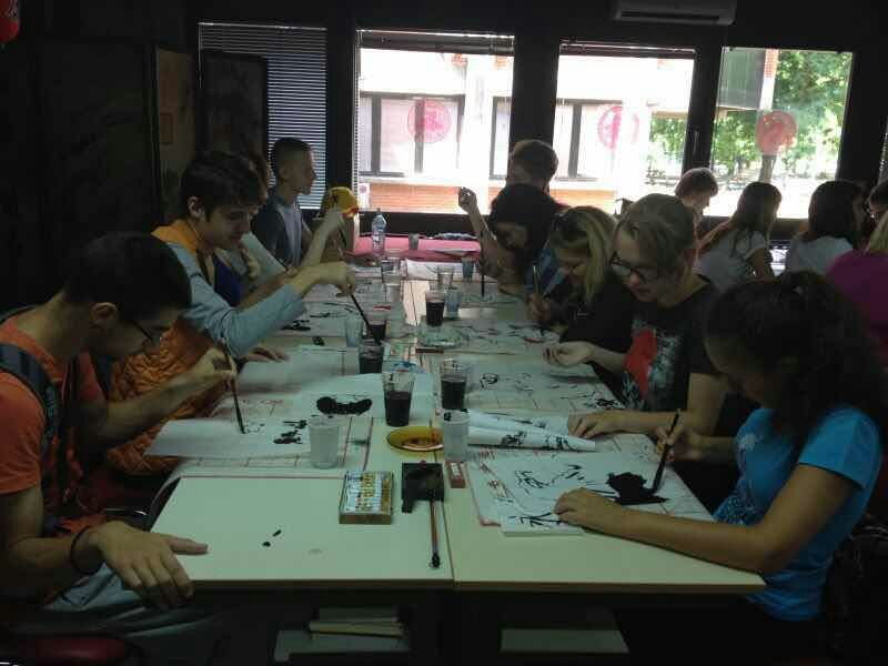 中國書法和國畫課受到了學生們的熱切追捧,筆墨紙硯對學習漢語的學生有著特殊的魅力和親切感。學生們在課堂上不僅熟練掌握了用毛筆書寫下自己的中文姓名,還學會了將塞爾維亞國家標志性動物鷹,用中國國畫的方式躍然紙上,生動而意義深刻。