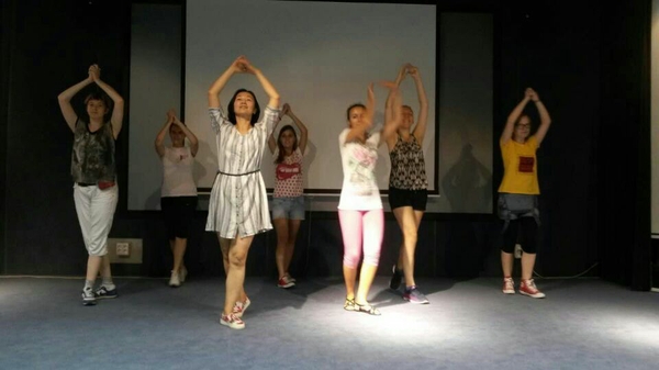 在中國民族舞蹈課上,中國老師將課堂搬到了學校大禮堂的舞臺上,從一顰一笑起步,給塞國學生傳授著傳統的新疆舞,讓學生們親身感受和盡情展現中國民族舞的魅力。